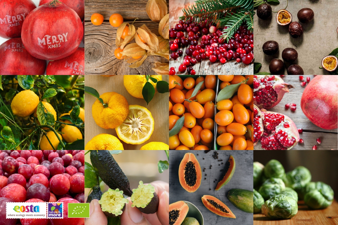 In diesem Jahr umfasst das Sortiment saisonale Klassiker wie Cranberries und Rosenkohl aus den Niederlanden, ergänzt durch Granatäpfel, Physalis und Passionsfrüchte aus Europa und Übersee. Darüber hinaus gibt es besondere Spezialitäten wie Meyer-Zitronen, Zitrus-Kaviar, Kumquats, Papayas und Pflaumen.