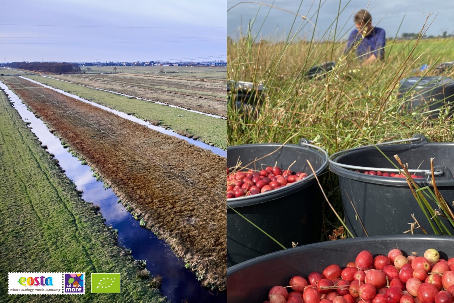 Dans la région néerlandaise de Krimpenerwaard, The Cranberry Company cultive des canneberges biologiques sur 18 hectares de tourbières. Un exemple innovant d'« agriculture en harmonie avec la nature », dans le respect du sol, de l'eau et de la biodiversité.