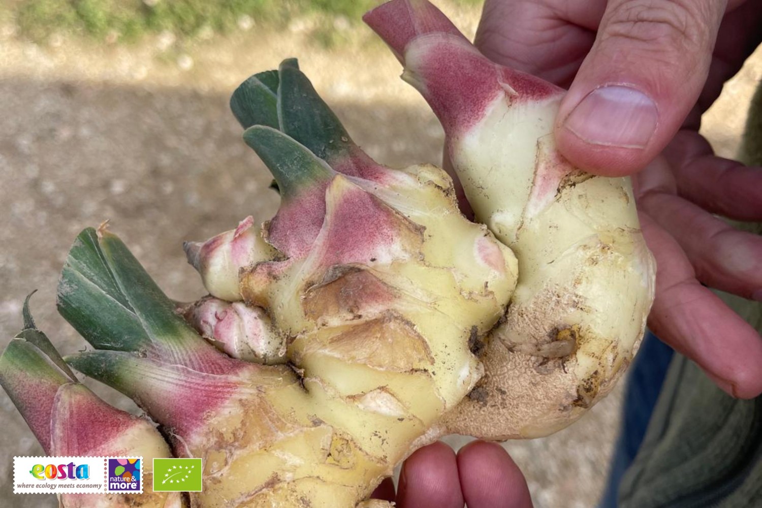 De gember van dit jaar wordt als verse gember aangeboden. Met deze Europese proefteelt zet Eosta samen met haar partners een stap richting kortere ketens en minder afhankelijkheid van overzeese teeltgebieden – een belangrijk thema voor de toekomst van biologische handel.
