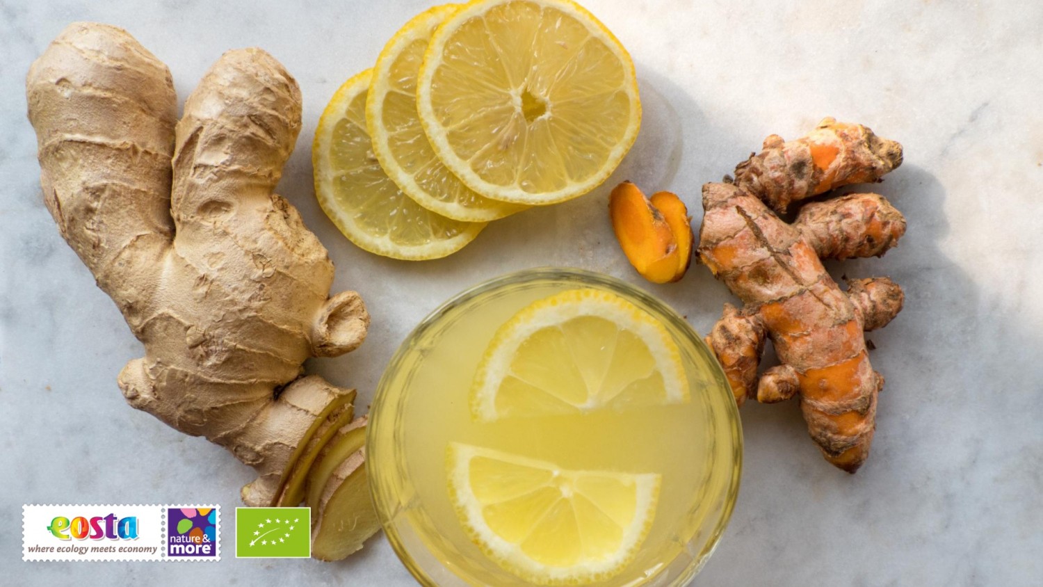 Extra benefit of organic: ginger, lemon and turmeric are often used with their peel in tea and shots. Organic means no traces of chemical pesticides in the glass – pure nature for the consumer.